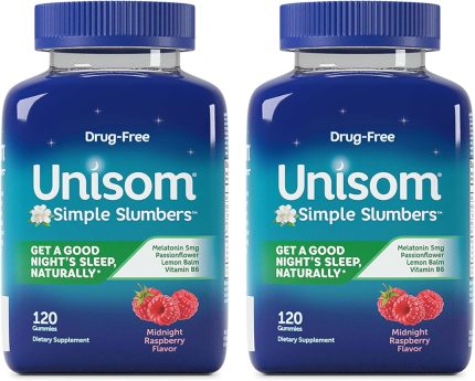 Unisom Simple Slumbers Drug-Free Sleep Aid Gummies, Melatonin 5mg, Sleep Support for Adults, Midnight Raspberry Flavor, 120 Count