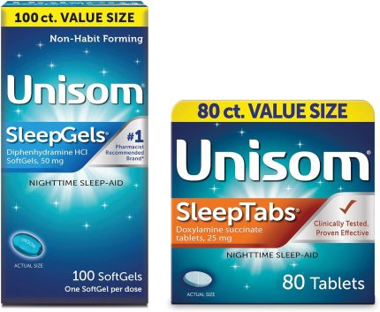 Unisom Nighttime Sleep-Aid Gels, Diphenhydramine HCI, 100 Count SleepTabs, Nighttime Sleep-aid, Doxylamine Succinate, 80 Tablets