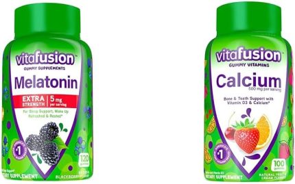 Vitafusion Melatonin and Calcium Gummy Vitamins Bundle with 5mg 120ct and Fruit Cream Flavored 100ct