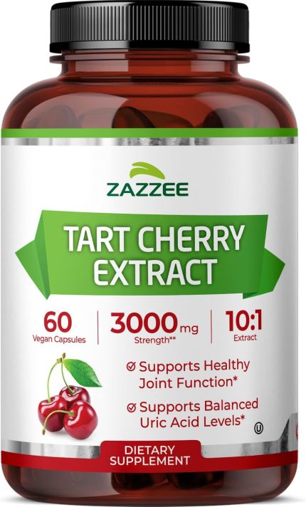 Zazzee Tart Cherry 10:1 Extract, 3000 mg Strength, 60 Vegan Capsules, 2 Month Supply, Certified Kosher, Concentrated and Standardized 10X Extract, 100% Vegetarian, All-Natural, Gluten Free, Non-GMO