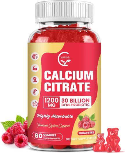 Calcium Citrate Gummies, Calcium 1200 mg with Vitamin d3, K2, Magnesium, Zinc for Bone, Muscle & Immune Support, High Absorption Calcium Supplement for Women & Men, Raspberry Flavor, 60 Chews