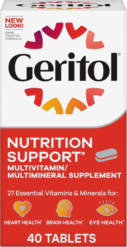 Geritol, Multivitamin Supplement, Contains B-Vitamins, Antioxidants, Vitamins C, E & D and Iron, 26 Essential Vitamins and Minerals, Gluten-Free, Non-GMO, No Artificial Sweeteners, 40 Tablets