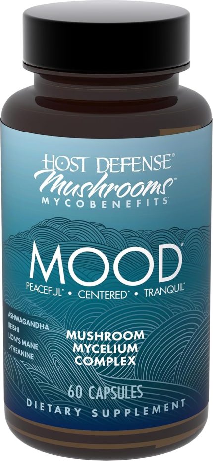 Host Defense MycoBenefits Mood* Capsules – Healthy Mind Support with Lion’s Mane, L-Theanine & Ashwagandha – Relaxing & Calming Supplement – 60 Capsules (30 Servings)