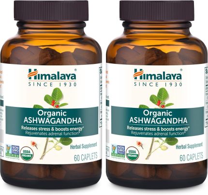 Himalaya Organic Ashwagandha, 120 Day Supply, Herbal Supplement for Stress Relief, Energy Support, Occasional Sleeplessness, USDA Organic, Non-GMO, Vegan, Gluten Free, 670 mg, 60 Caplets, 2 Pack