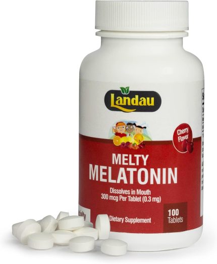 Landau 0.3mg-300 mcg Melty Melatonin for Kids & Adults – Easy-to-Take, Fast-Dissolving, Helps You Fall Asleep Faster – Kosher, Made in The USA – 100 Tablets, Cherry Flavor