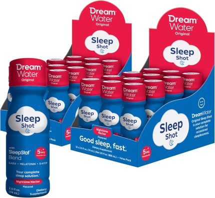 Dream Water Sleep Aid Supplement Drink; Melatonin 5mg, GABA, 5-HTP; Zero sugar, Natural flavors, No added colors, 2.5 oz liquid sleep shots, Nighttime Nectar, 24-Count