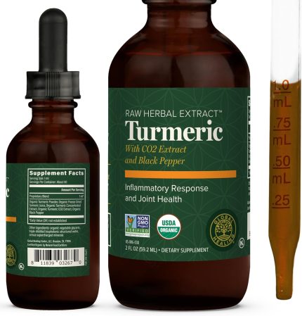 Global Healing Organic Turmeric Curcumin Supplement with Black Pepper Extract Liquid Drops to Support Joint Mobility Relief and Digestive Health Multi Turmeric Supplement- 2 Fl Oz