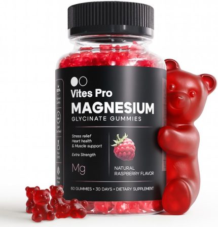 Magnesium Glycinate Gummies – High Absorption Magnesium Supplement for Sleep, Relaxation, Muscle Recovery – Natural Raspberry Flavor – 60 Gummies – Vegan, Non-GMO