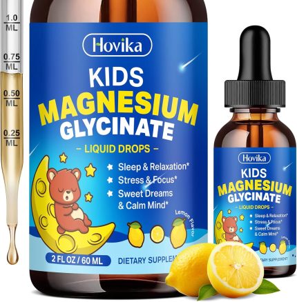 Magnesium Glycinate Liquid for Kids – with L-Theanine Omega-3, Vitamin B6, D3, Zinc – Kids Magnesium Drops for Sleep, Relaxation, Calm & Focus – 2 Fl Oz, Lemon Flavor