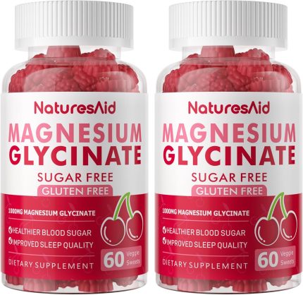 Magnesium Glycinate Gummies 1000mg – Sugar Free Magnesium Potassium Supplement with Vitamin D, B6, CoQ10 for Calm Mood & Sleep Support – 120 Cherry Gummies -2 Pack