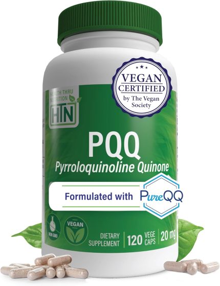 Health Thru Nutrition PQQ 20mg 120 Servings Pyrroloquinoline Quinone as PureQQ | Promotes Mitochondrial Biogenesis | Certified Vegan | Non-GMO Gluten Soy Free Capsules| Clean Label PQQ Supplement