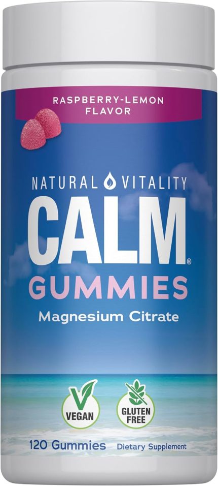 Natural Vitality CALM, Magnesium Citrate Supplement, Stress Relief Gummies, Supports a Healthy Response to Stress, Gluten Free, Vegan, Raspberry Lemon Flavored, 120 Gummies