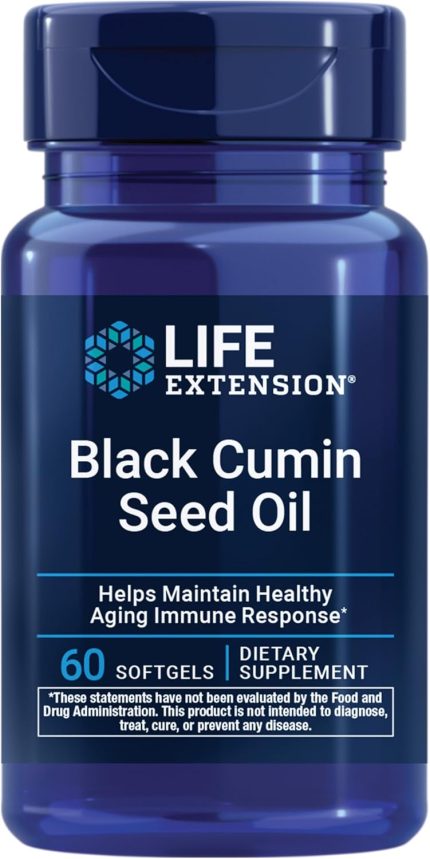 Life Extension Black Cumin Seed Oil, Black Cumin, Immune Health Support, Whole-Body Health, Healthy Aging, Gluten Free, Non-GMO, 60 softgels