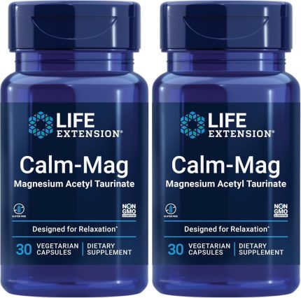 Life Extension Calm-Mag, Magnesium Acetyl taurinate, Daily Stress Management Formula, Supports Calmness and Relaxation, Gluten-Free, Non-GMO, Vegetarian, 30 Capsules,(Pack of 2)