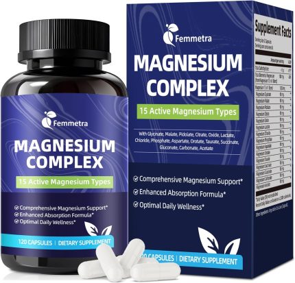 Magnesium Complex Supplement 500mg, 8 Active Forms Maximized Absorption– Glycinate, Citrate, Taurate & D3, B6 for Calm, Sleep & Healthy Muscle, 120 Capsules – 60 Count (Pack of 2)