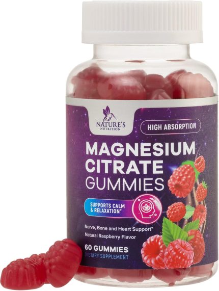 Magnesium Citrate Gummy Supplement – Improved Vegan Formula – High Absorption Magnesium Gummies for Adults & Kids – Mag Citrate Gummy Supplements – Delicious Raspberry Pomegranate Flavor – 60 Gummies