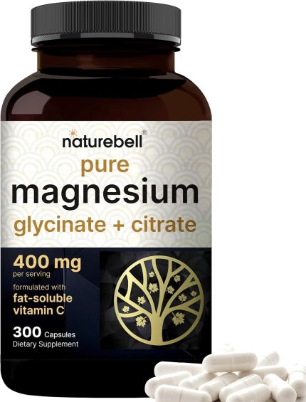 Magnesium Complex 400mg, 300 Capsules | Glycinate, Citrate | Chelated & Purified | Bone, Heart & Digestion Support | Non-GMO