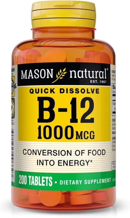 MASON NATURAL B12 1000 mcg Quick Dissolve Tablets for Healthy Conversion of Food into Energy, 200 Day Supply