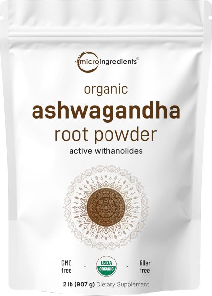 Micro Ingredients Organic Ashwagandha Root Powder | 2 Pound, No Filler, No Additives, Highly Purified | Active Withanolides, Adaptogenic Ayurvedic Herbal Supplements, No GMO, Gluten Free, India Origin