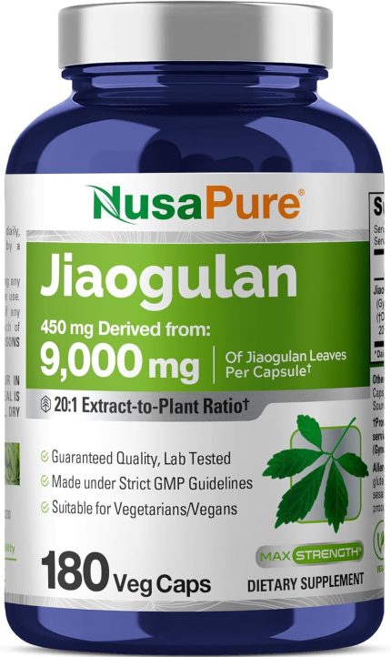 NusaPure Jiaogulan 20:1 Extract, 450 mg Equivalent to 9,000mg 180 Veggie Capsules (Vegetarian, Non-GMO, Vegan) Gynostemma Pentaphyllum
