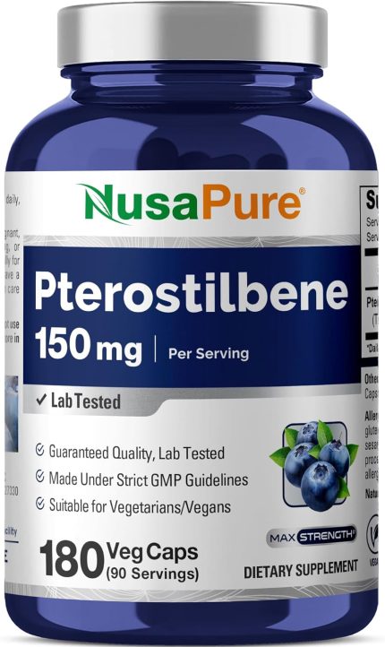 NusaPure Pterostilbene 150mg 180 Veggie Caps (Non-GMO, Vegan)