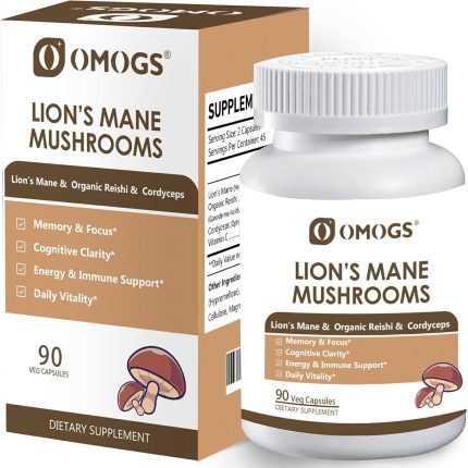 OMOGS Mushroom Complex Supplement Capsules 10:1 Extract, Lions Mane Supplement with Cordyceps, Reishi, for Brain Health, Memory Support, Focus & Immune System