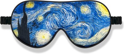 1 Pcs Silk Sleep Eye Mask with Elastic Strap/Headband Shade Art Eye Mask Zero Pressure on Eyelids & Eyelashes for Night Sleeping,Travel,Nap(Van Gogh The Starry Night)