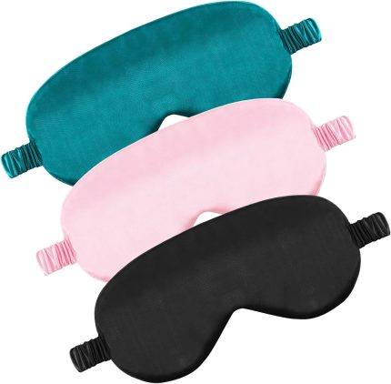 3 Pcs Sleep Mask Soft Silky Eye Masks Cover with Elastic Straps Effective Shading Blindfold for Sleeping Women Men Travel Eyeshade (Pink/Black/Green)