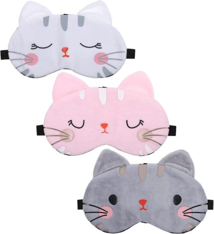 3 Pieces Cute Cat Sleep Mask, Cute Cat Eye Mask for Sleeping Cartoon Animal Sleeping Blindfold Eyes Cover Funny Animal Cats Sleepings Masks Lightweight Kawaii Eyemask for Women Men Kids