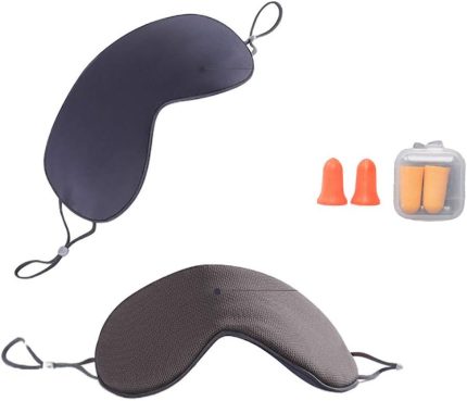 2-Piece Sleep Eye Mask, Double-Sided Cold and Warm,Eye Sleeping Mask for Sleeping with Adjustable Ear Strap,Eye Blinder for Travel/Sleeping,Free Noise Reduction earplugs (Light Gray/Black)