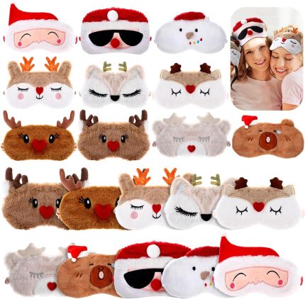 20 Pack Christmas Sleep Masks Gifts Cute Cartoon Animal Eye Masks Soft Plush Funny Capybara Reindeer Santa Snowman Blindfold Cover for Women Family Winter Holiday Sleepover Party Travel