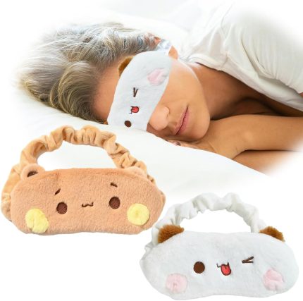 2Pack Cute Bear Sleeping Mask Soft Plush Eye Cover Eyeshade for Women Gift