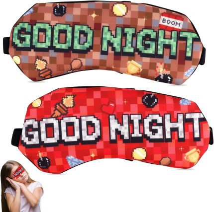 2pcs Pixel Theme Sleep Eye Masks, Ice Silk Soft Smooth Cartoon Video Game Sleep Mask with Adjustable Strap for Boys Girls Teens(Red & Brown)