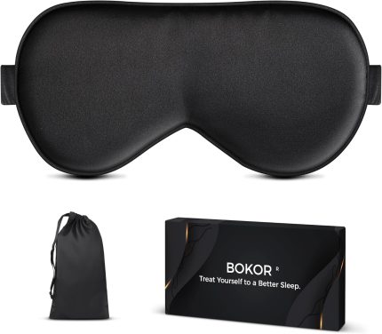BOKOR Silk Sleep Mask, Eye Mask for Sleep, Mulberry Silk Luxury Eye Cover, Light-Blocking, Skin-Friendly & Lightweight, Reduces Puffy Eyes – with Travel Bag & Gift Package – Black