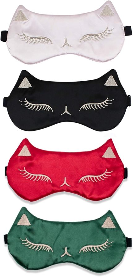 Cat Sleep Masks 4Pcs Silky Eye Mask Soft Blackout Eye Covers with Adjustable Band for Women Teens Girls Travel Nap