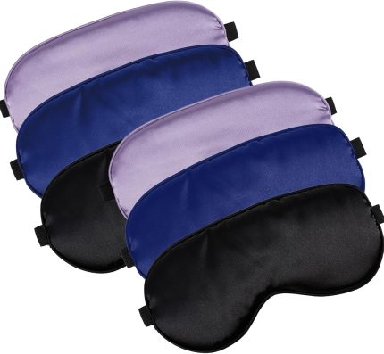 6 Pack Silk Sleep Mask,Silk Eye Mask for Sleeping,Soft Adjustable Strip Eye Cover,Soft Satin Blackout Eye Masks for Women Men,Blindfold Eyeshade for Night Sleep Travel(Black+Dark Blue+Purple)