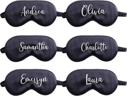 6X Eye Masks for Sleeping Personalized Text Your Name Monogram Wedding Favor Satin Bachelorette Bridesmaid Gift (Black)