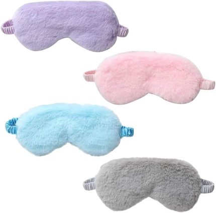 4 Pcs Plush Eye Mask Soft Fluffy Plush Eye Mask Sleep Mask Adjustable for Kids Adult Women
