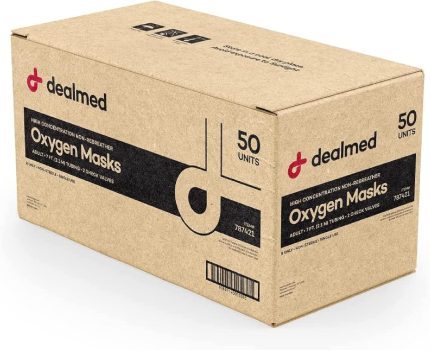 Dealmed Non-Rebreather Oxygen Mask, Adult Size – Clear Medical Oxygen Face Mask with Adjustable Nose Clip, for Hospitals, EMTs, First Aid Kits, and Clinical Use (50 Pack)