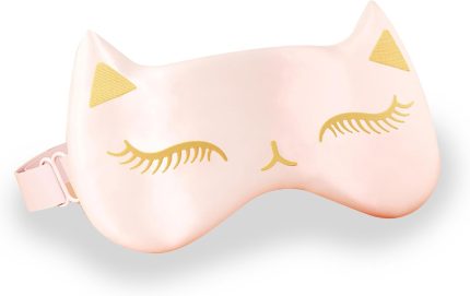 Drizzle Cat Eye Mask Natural Silk Sleep Mask Cute Smooth and Soft Eye Covers for Sleeping (Pink)