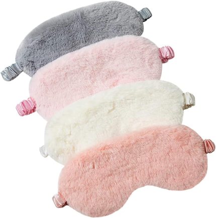 4 Pcs Plush Eye Mask Soft Fluffy Plush Eye Mask Sleep Mask Adjustable for Kids Adult Women