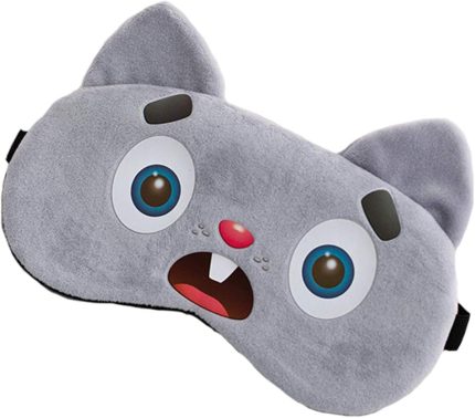 Fxaelian Cute Cartoon Novelty Animal Grey Dog Puppy Eye Mask for Sleeping Short Plush Sleep Mask Sleping Mask Blindfold Eye Cover for Women Kids Adult Girls Boys Grey