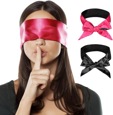 FRESHME 2pcs Silk Bundle Satin Sleep Mask Eye Mask Blindfold – Blockout Light Soft Adjustable Blind Cover Eye Mask, Valentine’s Day Gift Double Sides Rose Red & Black+Black 2pc Set