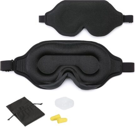 Hautton Sleep Eye Mask for Women Men, Upgraded 3D Light Blocking Contoured Cup Sleeping Mask with Adjustable Strap, Blindfold Soft Memory Foam Molded Eye Shade Cove for Travel Yoga Nap -Black