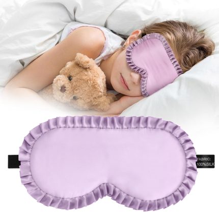 Kids Sleep Mask, 100% Real Mulberry Silk Eye Mask, Sleeping Mask for Kids with Adjustable Elastic Band, Soft & Light Blocking Eye Cover Gift for Boys Girls Teens Age 5+ (Purple)
