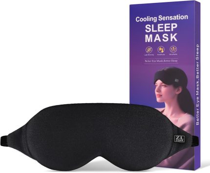 Cooling Sensation Sleep Mask for Side Sleepers – Soft Cotton & Ice Silk Fabric, Memory Foam Nose Padding, Adjustable & Comfortable for Total Blockout, Ideal for Travel and Naps (Black)