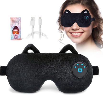 Cordless Heated Eye mask,Cute Sleep Eye mask for Women,USB Rechargeable Heating Eye pad with Battery Indicators,Warm Eye Compress for Relief Dry Eyes,Stye,Electric Portable Gift (Black)