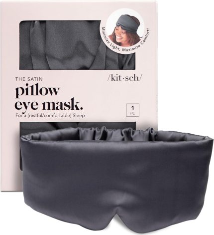 Kitsch Satin Sleep Mask – Eye Mask for Sleep, Softer Than Silk Satin Sleeping Mask Blindfold and Sleep Masks for Women and Men, Eye Care Travel Essentials – Charcoal Black