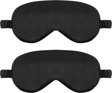 2 Pack Sleep Mask Silk Eye Mask Cover for Sleeping, Soft Satin Blindfold with Elastic Strap, Comfortable Night Sleeping Mask for Women Men (Black)
