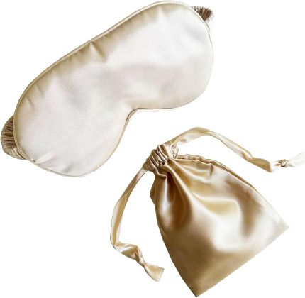 Silk Eye Mask for Sleeping – Satin Eye Cover with Silk Storage Bag Beige
